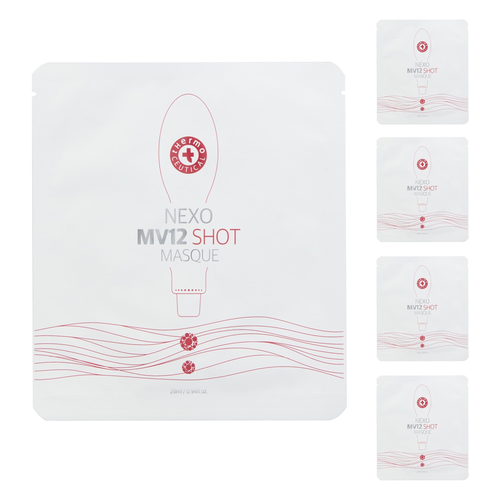 - 1 paquete con 5 mascarillas embaladas individualmente, de 28ml cada una